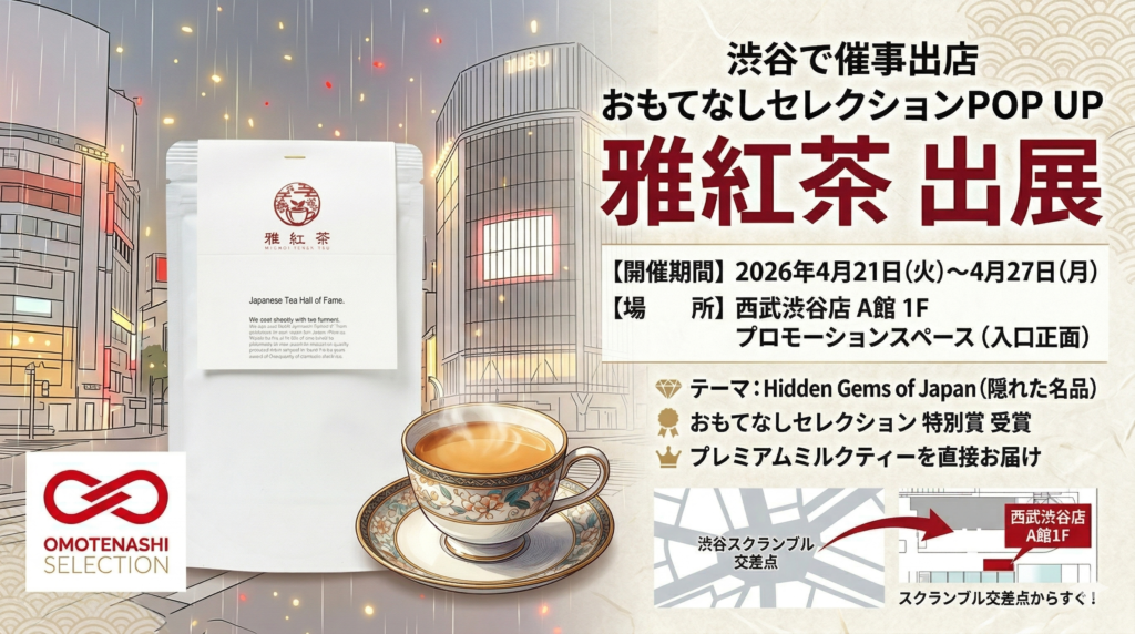 いつも雅紅茶(みやびこうちゃ)をご愛飲いただきありがとうございます。 この度、2026年4月21日(火)から4月27日(月)までの7日間、西武渋谷店にて初開催となる「おもてなしセレクションPOP UP」に、雅紅茶が出展する運びとなりました 。 「Hidden Gems... -